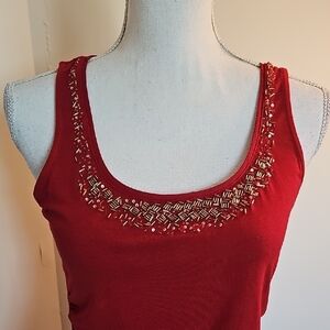 Elegant rust tank top with intricate embellishments. Perfect for a stylish and comfortable look. (g4)