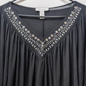 * Silvertone stud embellished deep V-neck