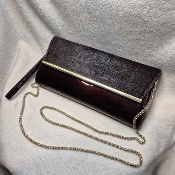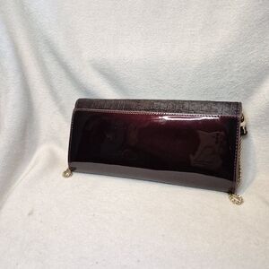 WHBM Embossed Calfhair & Patent Leather Clutch Evening Bag - Port Wine / Oxblood