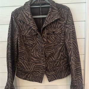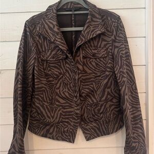 WHBM Espresso Zebra Print Denim Jacket Size 12. Great Condition!