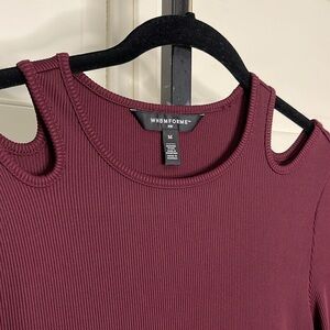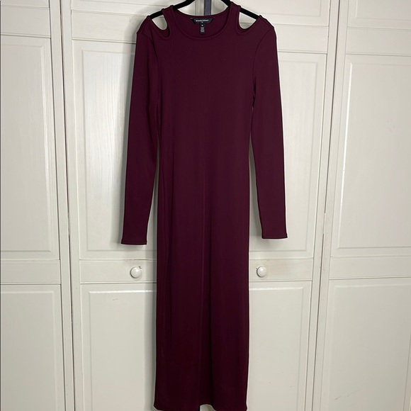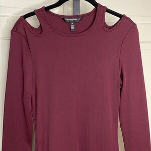 WHBM® FORME Rib Long Sleeve Cutout Dress Size Medium Burgundy