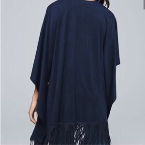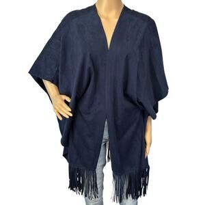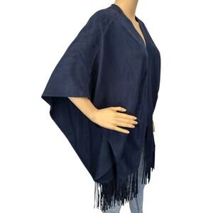 WHBM Faux Suede Fringe Ruana Wrap Poncho Navy Blue One Size