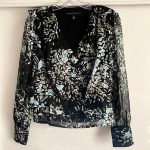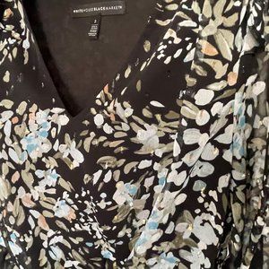 White House Black Market Floral Long Sleeve V Neck Blouse Size 2