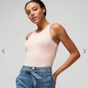 WHBM for Me White House Black Market Ribbed Stretch Tank Top Rose Smoke Pullover Racerback Fitted Smoothing Flattering Layering Neutral Minimal
