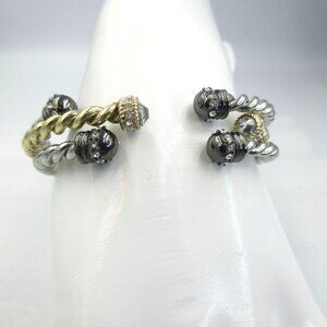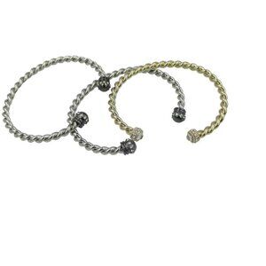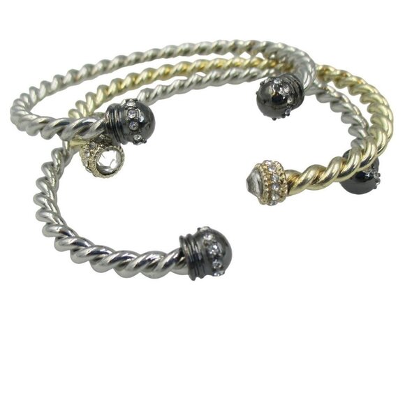 WHBM GOLDTONE SILVER TWISTED ROPE STONE CUFF BRACELET BANGLE Set of 3