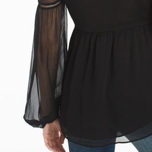 WHBM GORGEOUS! Floral Embroidered Blouse Black Translucent Sleeves 14