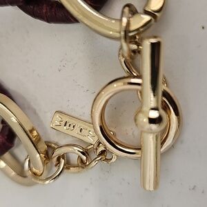 WHBM Genuine Leather Wrapped & Faux Gold Chain Link Bracelet Western Rustic