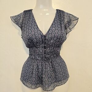 WHBM - Geo Dot V Neck Flutter Sleeve Shell Top