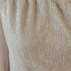 In great condition. Lined, May be worn on or off the shoulder. 55% polyester, 45% Metallic