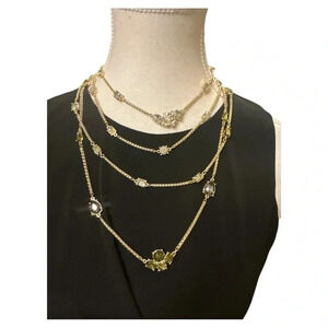 WHBM Gold Multi-Layer Necklace With Rhinestones & Gems NWT
