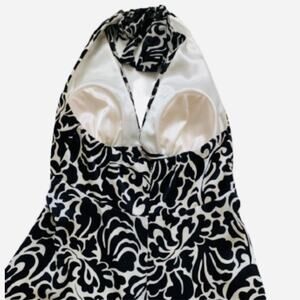 WHBM Halter Dress Black Cream Floral Sleeveless Silk Flowy Halter Dress Size 4