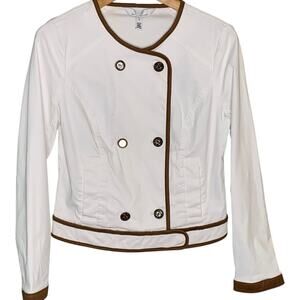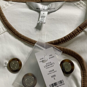 WHBM Jacket NWT Women's Size 4 White Coated Denim Contrast Piping Moto Style