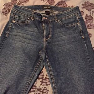 Very comfortable WHBM jeans in a Short. The bottoms show a little wear but overall in great shape. Wonderful everyday jeans.