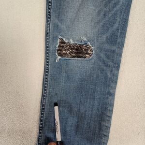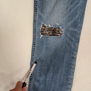 WHBM Jeans Womens Sz 4 High Rise Straight Everyday Soft Embellished Distressed