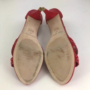 WHBM Jenevieve red leather strappy embellished sandal heels SZ 9