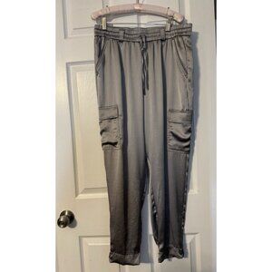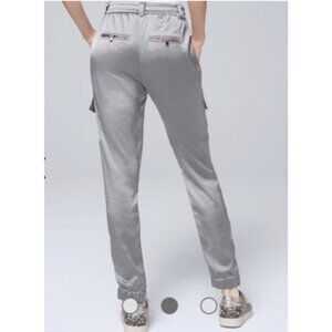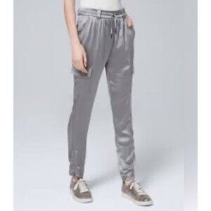 WHBM Jogger Pants 12 Silver Gray Weekend Pull On Satin Washable