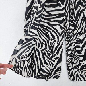 WHBM Jumpsuit Womens 8 Black White Zebra Print Wide Leg Belted Sleeveless Casual