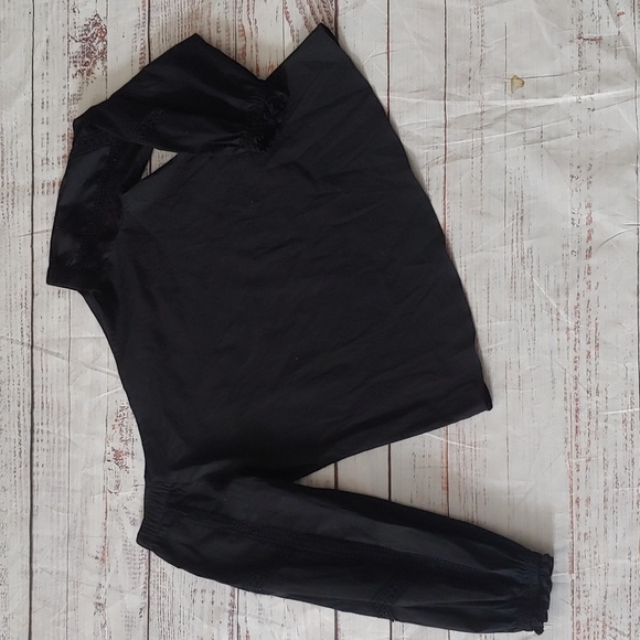 Beautiful details on this top! Wide slightly square neckline. Ruffle cuff sleeves, lace details. Cotton spandex blend with some stretch. (AA)