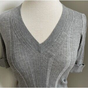 WHBM Ladies XS Gray Cashmere Blend Vneck Elbow Length Sleeve Sweater