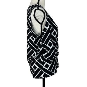WHBM Large Top Geometric Sleeveless Stretch Pintuck Detail Surplice V-Neck Black