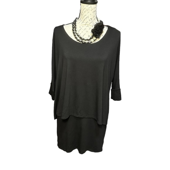 Black 3/4 sleeve overlayed top