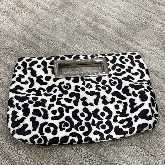 Elevate your style with this chic black and white leopard print clutch. Perfect for a night out or a special occasion, this bag adds a touch of elegance to any outfit. WHBM - check out my matching jacket!!