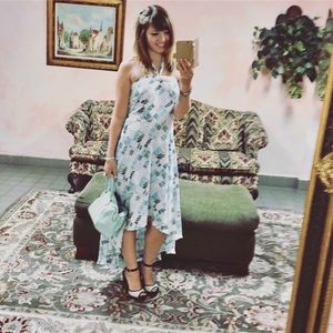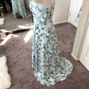 White House Black Market line pattern dress that converts from halter to strapless!
