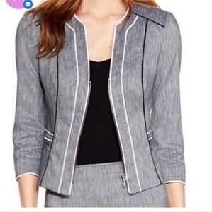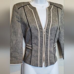 WHBM Linen Blend Gray White Black Structured Cropped Fitted Blazer Jacket Size 4