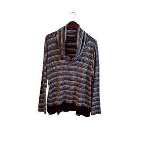 WHBM Long Sleeve Black White Striped Cowl Neck Lace Hem Knit Top Size M