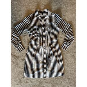 WHBM Long Sleeve Poplin Shirt Dress, French Navy Stripe, Size 8
