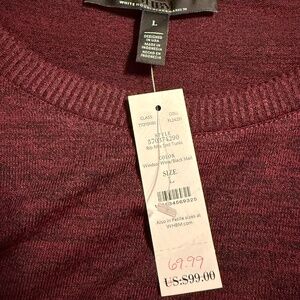 WHBM Long Sleeve Ribbed Tunic size L. NWT. Color: Windsor wine/Black Marl. Pictures were taken with and without a flashlight.