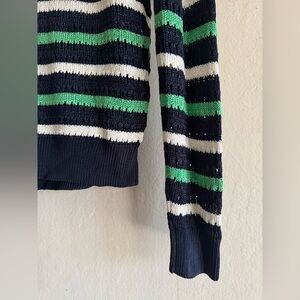 WHBM Long Sleeve Stripe V-Neck Pullover Sweater Crochet knit Size Medium