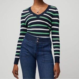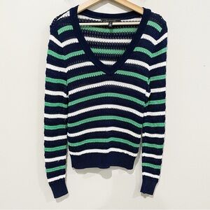 WHBM Long Sleeve Stripe V-Neck Pullover Sweater
