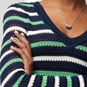 WHBM Long Sleeve Stripe V-Neck Pullover Sweater Size Small Preppy Knit Coastal