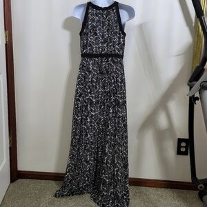 White House Black Market Maxi Halter Dress Black & White Pattern, Size 00.