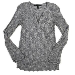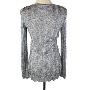 WHBM Metallic Shimmer Knit Top Size XS Gray Silver Long Sleeves Tie V Neck