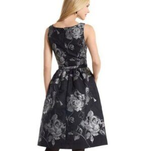 WHBM Metallic Silver Floral Black Tulle Poofy Evening Cocktail Wedding