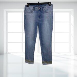 WHBM Mid-Rise Soft Slim Crop Jeans Size 8 Bronze Gold Metallic Cuff Denim