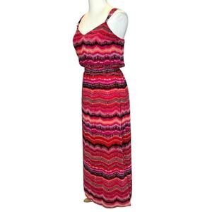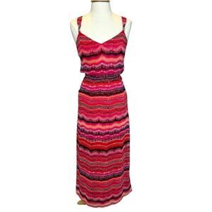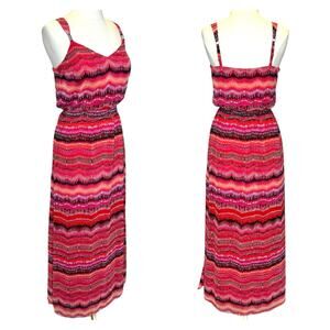 WHBM Multicolor Striped Chiffon Maxi Dress Sleeveless Side Slit Women's Size S