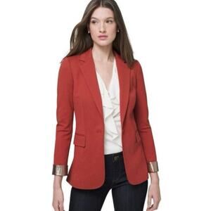 WHBM NEW Women's 14 Metallic Trim Blazer Jacket Burnt Sienna Career Quiet Luxury