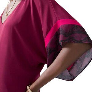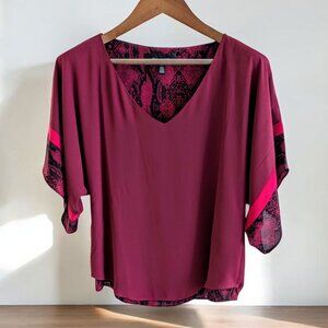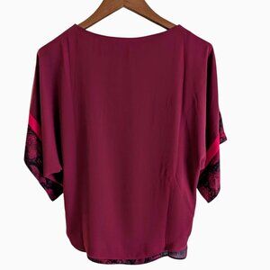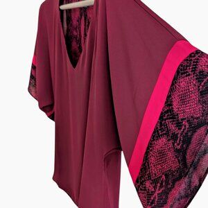 WHBM NWOT Kimono Sleeve Blouse Maroon Pinot Red Snakeskin Pattern Lining