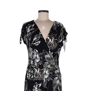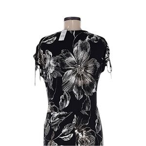 WHBM NWT Black Floral Wide Leg Jumpsuit 8 Surplice Neck Ruched Sleeves Pockets