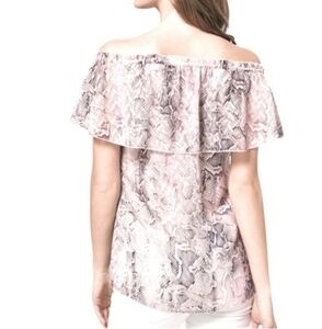 WHBM Off-the-Shoulder Blouse Pastel Chiffon Snake Print Ecru White Tan Pink Sz s