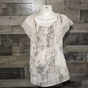WHBM Off-the-Shoulder Blouse Pastel Chiffon Snake Print Ecru White Tan Pink Sz s