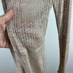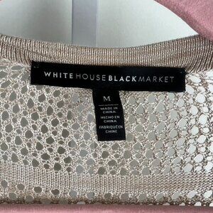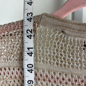 WHBM Open Front Metallic Knit Long Duster Cardigan Sweater M Long Sleeve