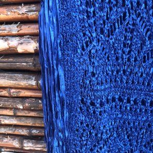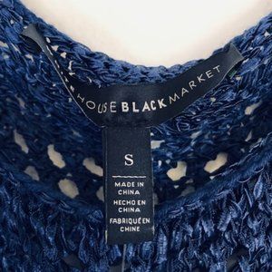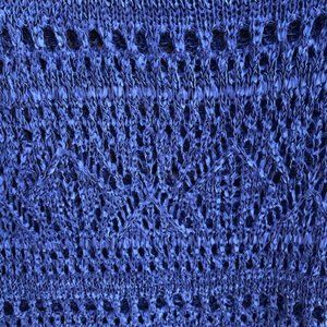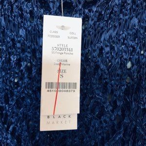 WHBM open knit fringe poncho top in a gorgeous royal blue (Deep Marine) with batwing arms with fringe.