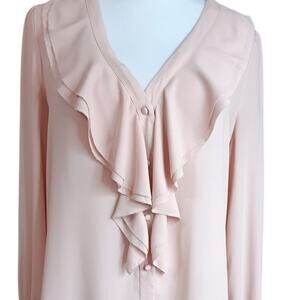 WHBM Pale Blush Pink Ruffled Top Blouse Medium Dressy Event Career Classic VNeck
