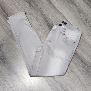 WHBM Pale Gray Skimmer Side Zipper Ankle Jeans, silver hardware, and no flaws at all. Slight stretch and soft denim. Waist flat is 13", 8" rise and 27" inseam.