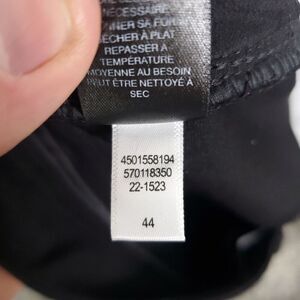Elevate your wardrobe with these stylish and versatile pants from White House Black Market. The sleek black color and solid pattern make them perfect for any occasion, whether it be a formal event or a day at the office. The pants feature a low rise, straight leg style, and a flat front for a flattering fit. The closure includes both a zip and button for added security, and the pants come equipped with pockets for convenience. Made from a comfortable and stretchy blend of nylon, spandex, and rayon, these pants are machine washable for easy care. Perfect for any season, these dress pants are a must-have addition to any fashion-forward woman's wardrobe.