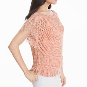 WHBM Peach Colored Fringe Pullover Sweater Size Medium (Runs Large)